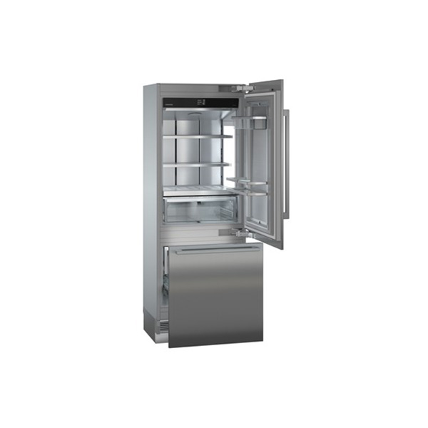 The Liebherr Monolith ECBN 9471 is a built‑in LargeDoor fridge‑freezer offering a total volume of 400 litres, with separate refrigerator, BioFresh and freezer compartments. It features precise DuoCooling, BioFresh‑Plus for longer freshness, and convenient InfinitySwipe touch control. Integrated InfinityLight, InfinitySpring water dispenser and an automatic IceMaker enhance everyday use. The appliance is designed for flush installation in kitchen units and includes options for Side‑by‑Side combinations and custom panels.