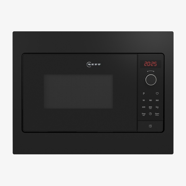The N 30 HlawG25S3B is a black built–in microwave designed for upper cabinets and 50 cm wide wall cupboards. It offers up to 800 W microwave power with user–friendly electronic controls, LED display and side–opening left hinged door for elevated installation. With EasyClean, a 20 l cavity, 7 automatic programmes and a Quick Start button, it provides straightforward, low–effort microwave cooking plus practical safety features.