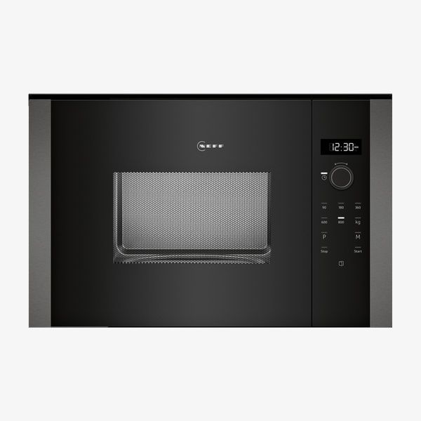 This built–in graphite–grey microwave oven is designed to coordinate with N50 ovens and suits households looking for quick, convenient cooking. It offers microwave power up to 800 W with intelligent inverter technology, a user–friendly LED display and electronic controls with retractable dials and touch keys. With a 20 l stainless steel cavity, side–opening left hinged door and automatic programmes for defrosting and cooking, it supports easy everyday meal preparation.