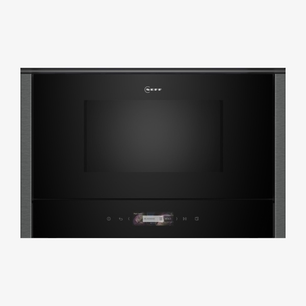 The N 70 Nl4wr21G1B is a Graphite–Grey built–in microwave oven designed for upper cabinets and wall units. It offers 900 W microwave power with intelligent inverter technology for gradual, even heating and gentler cooking. A 3.7–inch Full Touch TFT display and touch key operation provide intuitive, user–friendly control, while automatic meal settings and EasyClean make everyday cooking and cleaning quick and convenient.