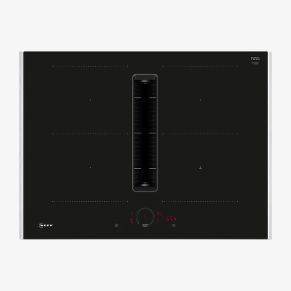 This 70 cm N 70 induction hob with integrated downdraft ventilation combines a four-zone induction cooktop and high-performance extractor in one built-in appliance. It is suitable for ducted or recirculated extraction and for installation into a 60 cm base cabinet. With Combi Induction, Twist Touch® control, powerful yet low-noise BLDC ventilation and easy-clean filters, it is designed for flexible cooking with a clear view and convenient cleaning.