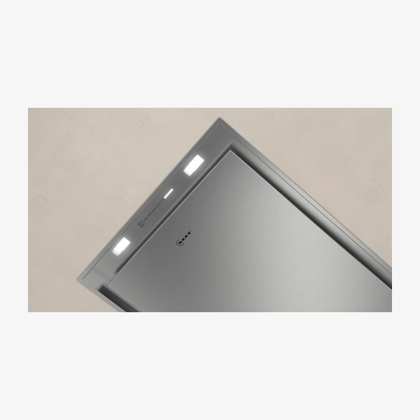 The N 50 i95CAQ6N0B is a 90 cm stainless steel ceiling cooker hood designed to sit flush with the ceiling for an open, clear kitchen. Suitable for installation in the ceiling as an island or ceiling hood, it offers ducted extraction or recirculation with an energy efficiency class A rating. With cooktop–based hood control, remote control, dimmable LED lighting and an efficient, quiet motor, it provides powerful extraction for modern kitchens.