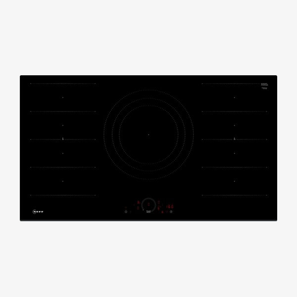 The NEFF N 70 T69FHV4L0 is a 90 cm built–in induction hob designed for flexible cooking with five zones and two Flex zones. Twist Touch® and Multitouch+ controls allow precise power adjustment, while Power Boost, Pan Boost and 17–stage power settings support time–saving performance. Home Connect enables remote monitoring and smart hood control. Safety features include a control panel lock, 2–stage residual heat indicators, pause function and a safety cut–out facility.
