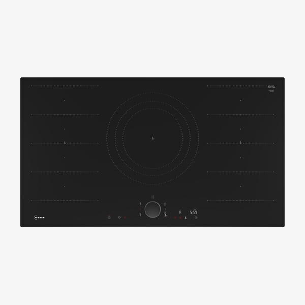 The N 90 T69FUV4L0 is a 90 cm built–in Flex Induction hob designed for surface mounting without a frame, offering space for five pots or pans. It features two Flex zones, a ring zone triple for extra large cookware and Twist Pad® magnetic control. Power Boost, Extended Frying Sensor, Favourite Button and Home Connect compatibility provide convenient, precise cooking, while multiple safety functions support everyday use in modern kitchens.