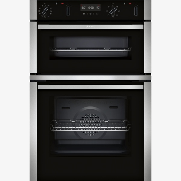 The N 50 U2ACH7AN7B is a built–in double oven designed for flexible cooking with a 71 litre main cavity. It offers CircoTherm® hot–air baking on up to three levels, multiple heating methods and rapid heat. Pyrolytic cleaning and EasyClean support straightforward maintenance, while the quadruple glazed CoolTouch door and safety features enhance everyday use. Home Connect readiness enables control and monitoring via an app on WLAN.