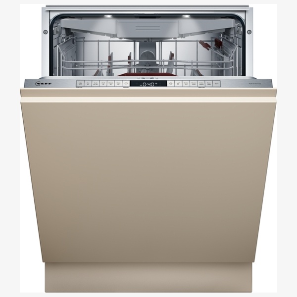 The Neff N 70 S187TC800E is a fully integrated 60 cm dishwasher with Energy Label A and capacity for 14 place settings. It is designed for built–in installation with handleless kitchens in mind, featuring doorOpen Assist for effortless opening. Flex 3 baskets, a Flex drawer and adjustable Rackmatic top basket offer smooth, adaptable loading, while Zeolith technology and the High Efficiency Energy Saving System provide effective, energy–efficient drying. Home Connect enables Wi–Fi control and connected services.