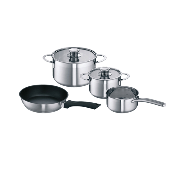 The Z9442X0 cookware set provides three pots and a pan so you can fry, stew and sizzle a variety of dishes. Made from stainless steel, the set includes induction compatible pieces with generous capacities, glass lids on selected pots, and a PTFE pan. It is suitable for use in the oven within specified temperatures and can be cleaned in the dishwasher for added convenience.