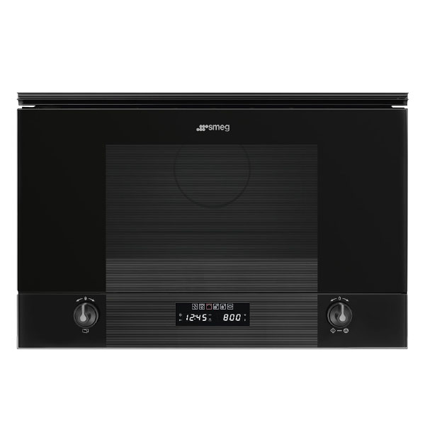 The SMEG MP122B3 is a built–in, under–counter electric microwave with grill, designed for integrated kitchen installations. It features electronic controls with Linea control knobs, a LED display and stainless steel cavity with a ceramic base. With 22 l usable volume, 850 W microwave power and a 1250 W heating element grill, it supports fast cooking and grilling. Safety is enhanced by a child lock, safety thermostat and automatic microwave stop when the door is opened.