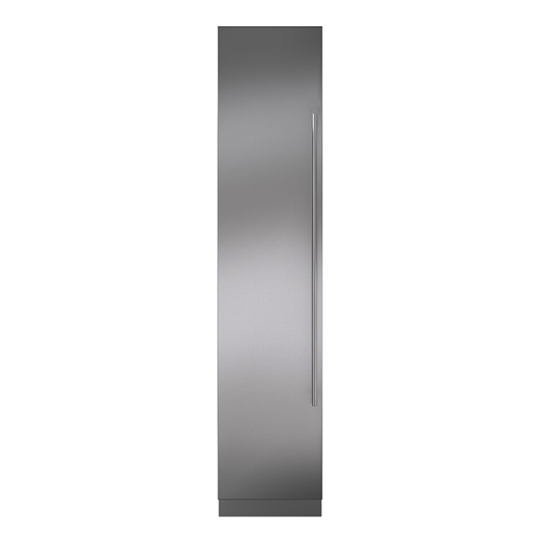 The 46 cm designer column freezer with ice maker (model ICBDEC1850FI) is a panel-ready freezer column designed to integrate within cabinetry or match other Sub-Zero and Wolf products with stainless-steel accessory panels and handles. It offers a ClearSight™ LED lighting system, adjustable shelving and door bins, and an automatic ice maker with Max Ice Mode. Magnetic door seals help lock in cold air to support freshness and reduce energy consumption.