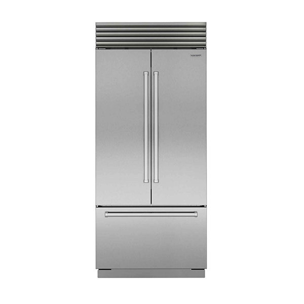 The 107 cm Classic French door refrigerator/freezer with internal dispenser, model ICBCL4250UFDID/S, combines Split Climateâ„¢ intelligent cooling with ClearSightâ„¢ LED lighting to help keep food fresher for longer while fully illuminating the interior. Stainless-steel exterior with tubular or pro handles coordinates with other Sub-Zero and Wolf products. Flexible storage includes adjustable shelves, crisper drawers, door bins and an expandable freezer basket, with internal water dispenser, air purification system and automatic ice maker.