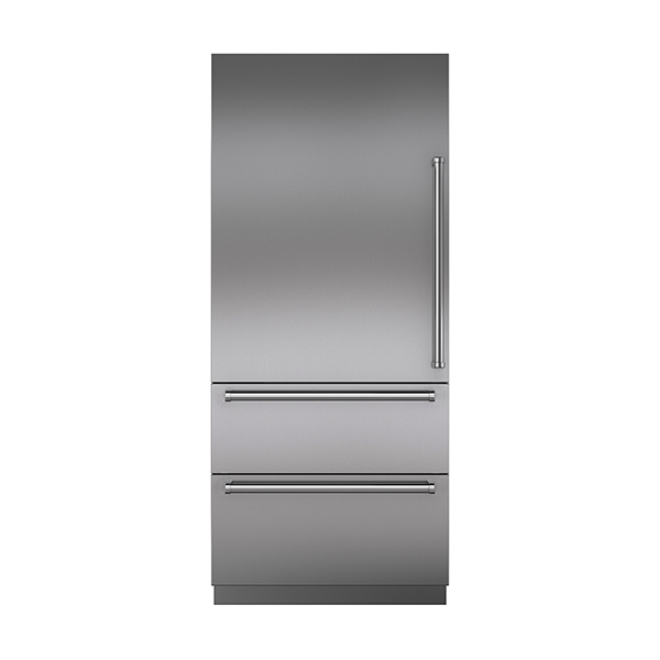 The ICBDET3650CIID is a 91 cm panel-ready designer over-and-under refrigerator/freezer combining an internal water dispenser, automatic ice maker and Split Climateâ„¢ intelligent cooling. ClearSightâ„¢ LED lighting and sleek stainless accents illuminate and trim the interior, while adjustable shelves, drawers and door bins provide flexible storage. It is suitable for integrated kitchen installations and accepts custom panels or stainless-steel accessory panels and handles to coordinate with other Sub-Zero and Wolf products.